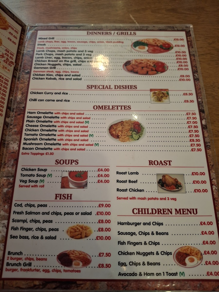 Many visitors come here to enjoy cozy all-day breakfast options like the Brunch Grill or Eggs Benedict, which pair naturally with the laid-back, slightly nostalgic setting. The range of extras—from crispy bacon and mushrooms to baked beans and fried bread—helps tailor each meal to your own preferences, blending traditional café fare with a little local character.
